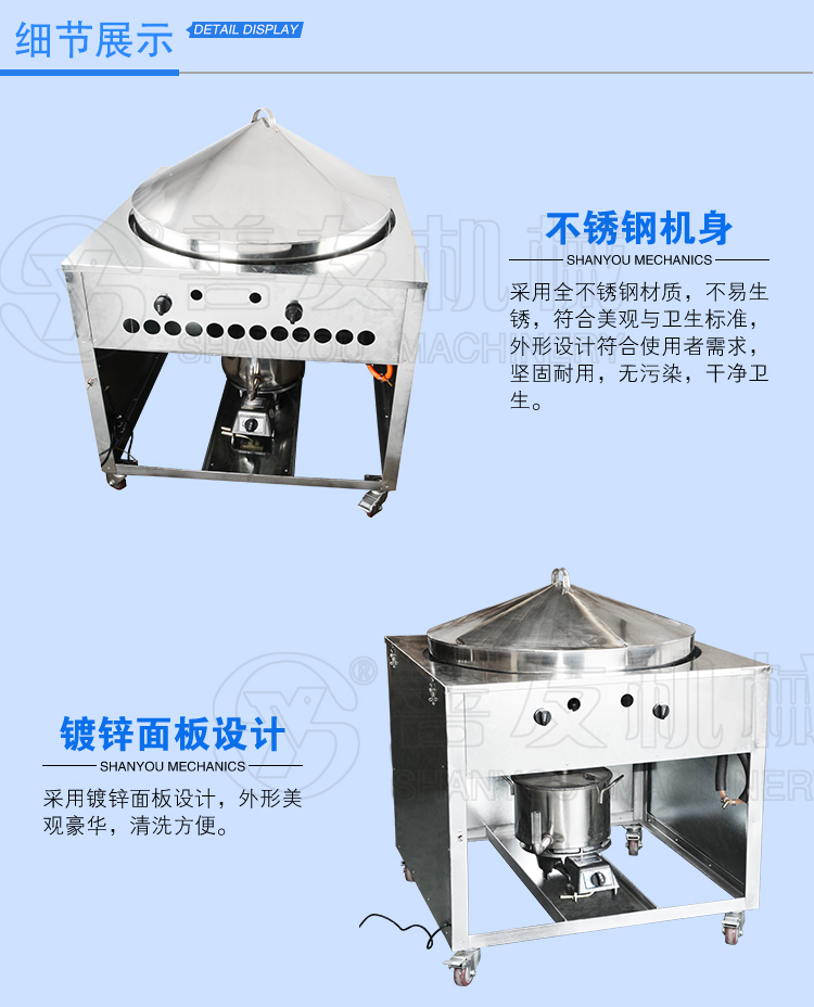 4、电动燃气锅巴馒头机具有煎烤和蒸汽功能,专业炉灶与机身一体设计,使用操作简单,打火和火力调节十分方便,跟使用家用液化气灶一样方便。